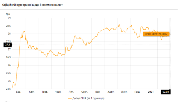 Национальный банк Украины обновил курсы валют на 2 марта 2021 года.