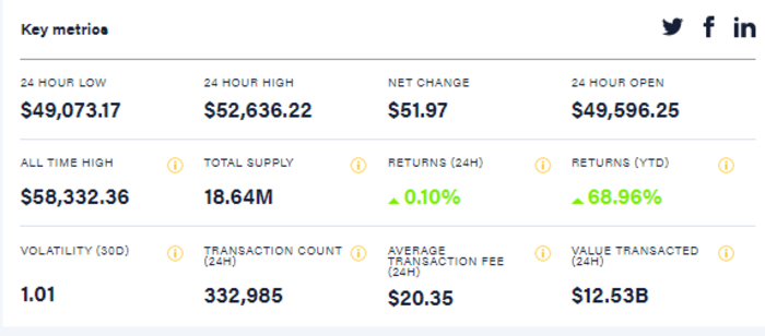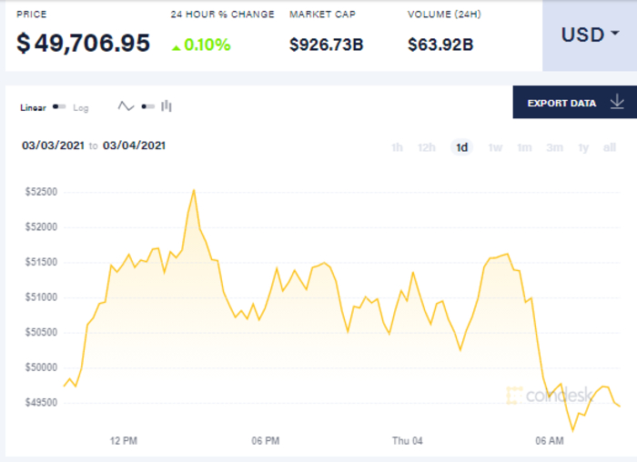 Так, на 09:00 утра 4 марта биткоин торгуется по 49,706.95 доллара. С начала суток биткоин вырос до 51363 долларов за единицу, к шести часам утра он упал до 49583 долларов, к девяти часам утра биткоин вырос до 49,706.95 доллара за единицу.