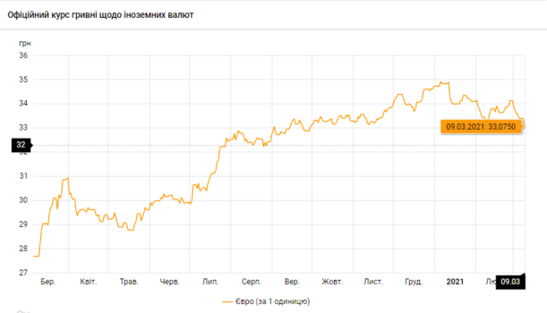 Национальный банк Украины обновил курсы валют на 9 марта 2021 года.