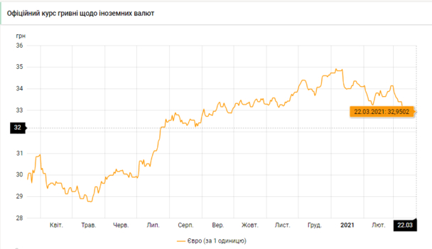 Национальный банк Украины обновил курсы валют на 22 марта 2021 года.