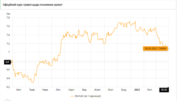 Национальный банк Украины обновил курсы валют на 30 марта 2021 года.