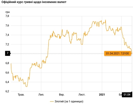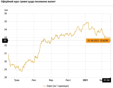 Национальный банк Украины обновил курсы валют на 1 апреля 2021 года.