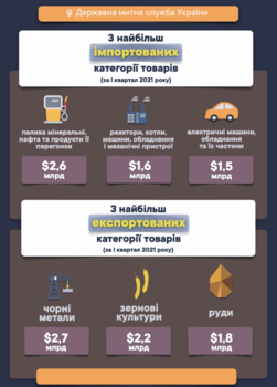 Так, в I кв. 2021 Украина импортировала товаров на 15,1 млрд. долларов, что на 12% или 1,6 млрд. долларов больше, нежели в 2020 году.