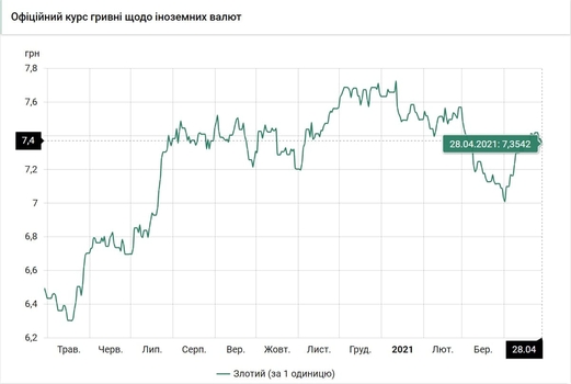 - 100 польских злотых - 735 грн (7,35 за злотый, -3 коп.)