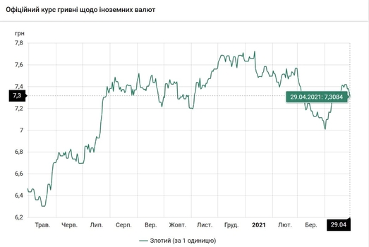 - 100 польских злотых - 730 грн (7,30 за злотый, -4 коп.)