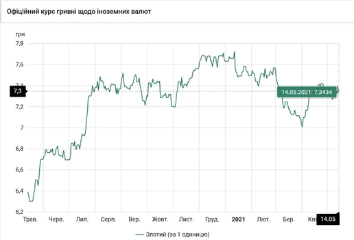 - 100 польских злотых - 734 грн (7,34 за злотый, -3 коп.)