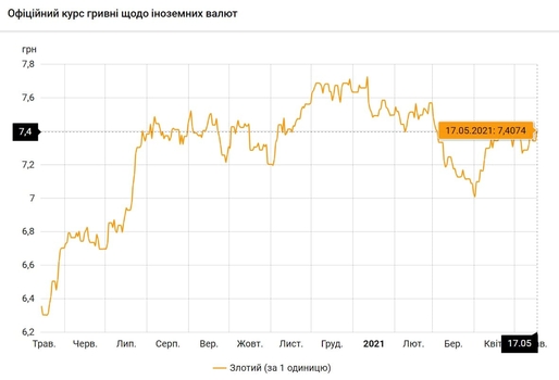 - 100 польских злотых - 740 грн (7,40 за злотый, +6 коп.)