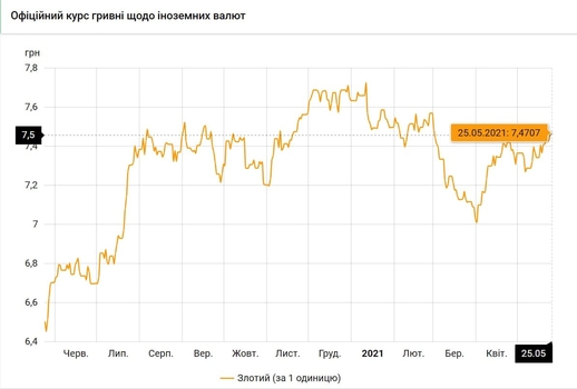 - 100 польских злотых - 747 грн (7,47 за злотый, +1 коп.)