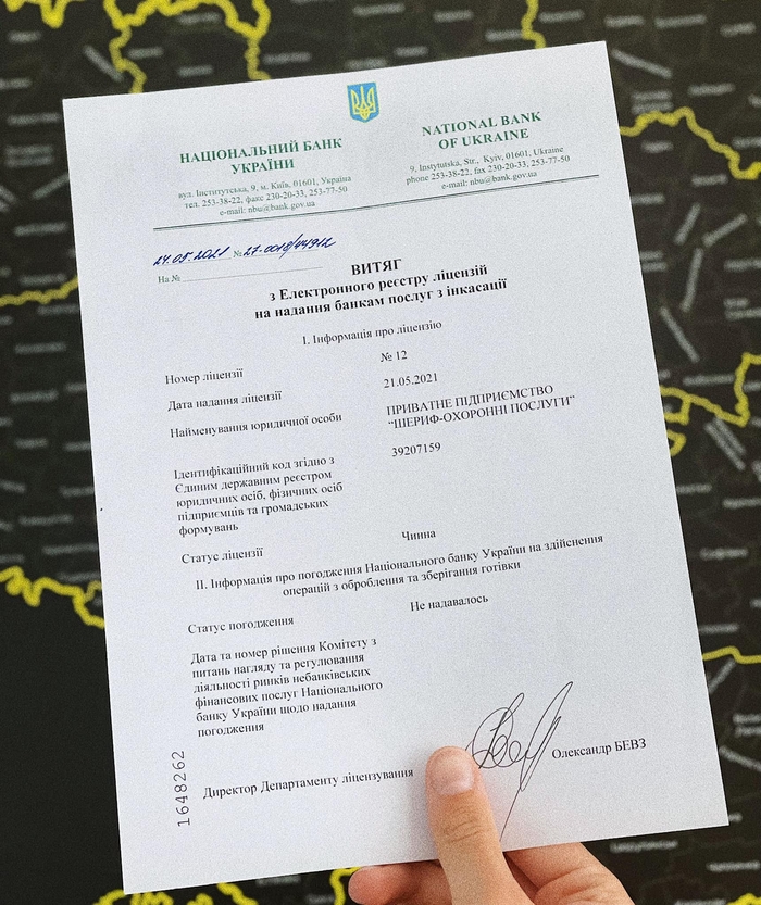 Холдинг Шериф став однією з 12 компаній в Україні, що мають право на перевезення валютних цінностей та інкасацію коштів.