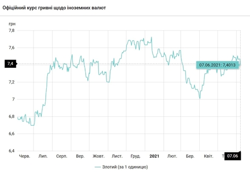 - 100 польских злотых - 740 грн (7,40 за злотый, -7 коп.)
