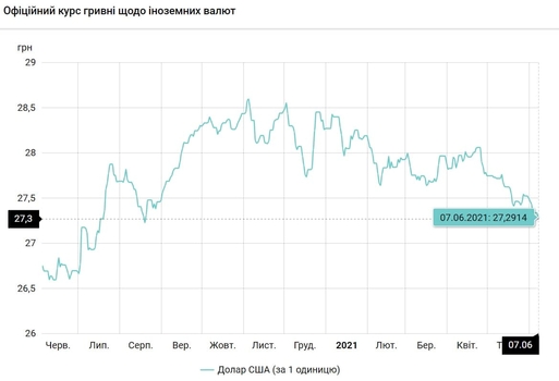 В свою очередь аналитики спрогнозировали курс доллара до конца июня - в диапазоне 27,0-27,5 грн. Эксперты ожидают, что в июне курс гривны постепенно будет укрепляться к доллару США, а также к евро.
