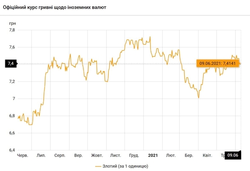 - 100 польских злотых - 741 грн (7,41 за злотый, +1 коп.)