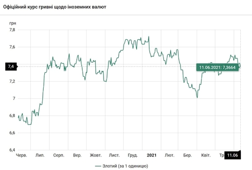- 100 польских злотых - 736 грн (7,36 за злотый, -5 коп.)