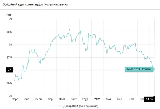 Курс валют на 14.06.2021: Гривна укрепилась к доллару