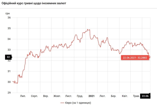 Курс валют на 22.06.2021: Гривна укрепилась к евро