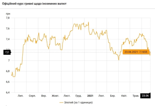 - 100 польских злотых - 716 грн (7,16 за злотый, -7 коп.)