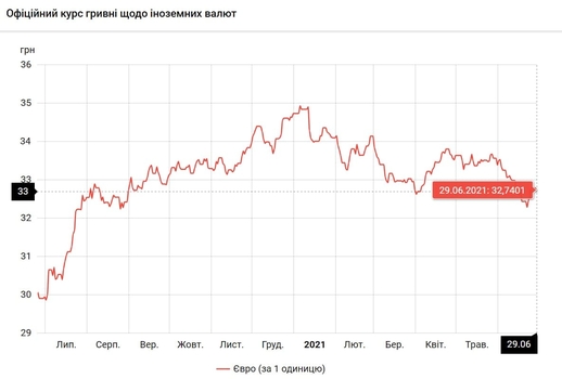 Курс валют на 29.06.2021: Гривна укрепилась к доллару