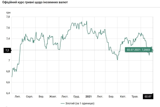 - 100 польских злотых - 720 грн (7,20 за злотый, +5 коп.)