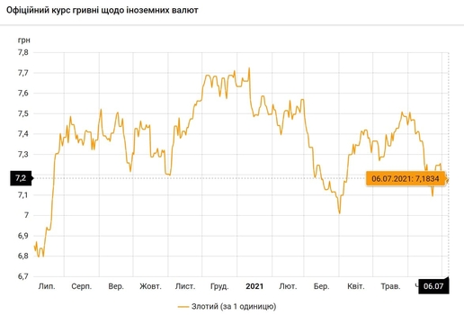 - 100 польских злотых - 718 грн (7,18 за злотый, +3 коп.)