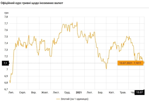 - 100 польских злотых - 710 грн (7,10 за злотый, -2 коп.)