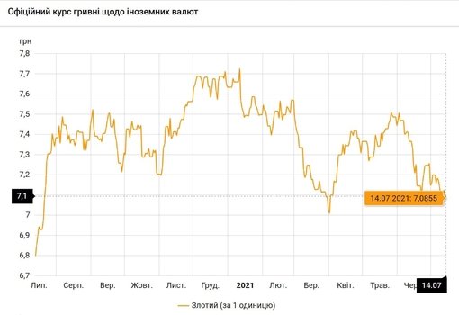 - 100 польских злотых - 708 грн (7,08 за злотый, -2 коп.)