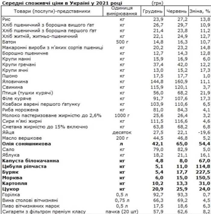 По данным Государственной службы статистики, за первые полгода 2021 года в Украине подорожала большая часть основных потребительских продуктов, товаров и услуг. Больше всего поднялись цен на овощи, подсолнечное масло и сахар. Об этом 14 июля сообщила пресс-служба Госстата.