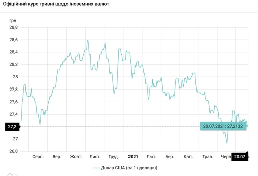 Курс валют на 20.07.2021: Гривна укрепилась к доллару