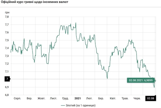 - 100 польских злотых - 698 грн (6,98 за злотый, +1 коп.)