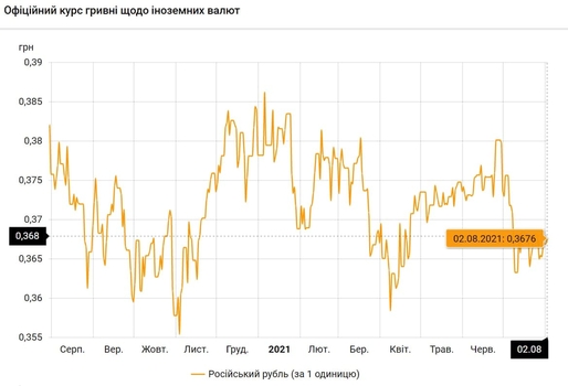 - 100 российских рублей - 36,7 грн (3,67 за 10 рублей, +1 коп.)
