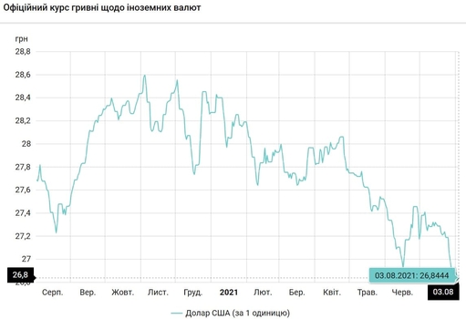 Курс валют на 3.08.2021: Гривна дешевеет
