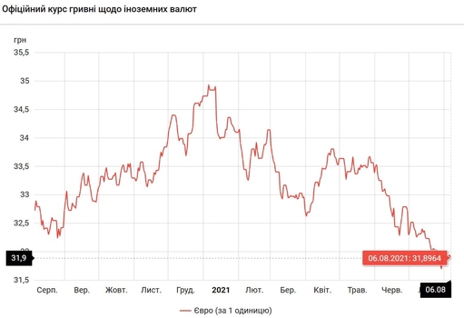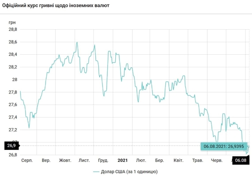 Курс валют на 6.08.2021: Гривна укрепилась к евро