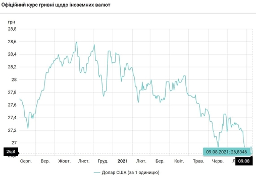 Курс валют на 9.08.2021: Гривна дорожает