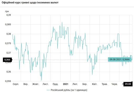 - 100 российских рублей - 36,6 грн (3,66 за 10 рублей, -2 коп.)