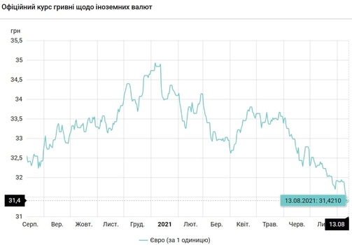 Курс валют на 13.08.2021: Гривна укрепилась к доллару
