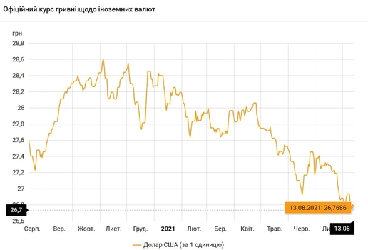 Ранее мы писали, что, по прогнозам аналитиков, в августе курс гривны продолжит укрепляться и к концу месяца может прийти в коридор 26,7-27,0. При этом без прямых вливаний НБУ на рынок курс мог бы достаточно легко уйти ниже 26 гривен за доллар.