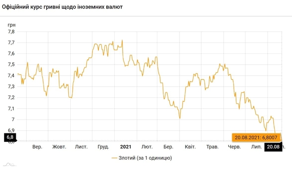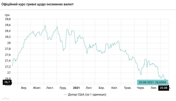Национальный банк Украины обновил курсы валют на 20 августа 2021 года.