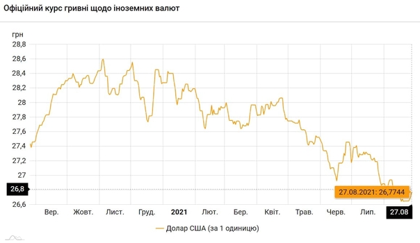 Курс валют на 27.08.2021: Гривна дешевеет
