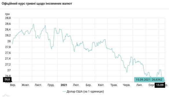 Курс валют на 15.09.2021: Гривна укрепилась к доллару