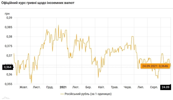 - 100 российских рублей - 36,4 грн (3,64 за 10 рублей, -2 коп.)