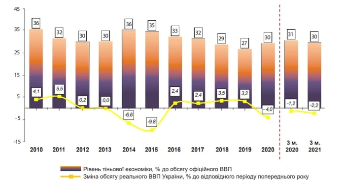 "Незначительное снижение уровня теневой экономики произошло на фоне адаптации субъектов экономической деятельности к перманентным условиям карантина, продолжающиеся уже более года", — резюмировали в Минэкономики.