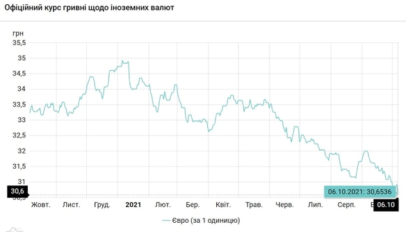 Курс валют на 6.10.2021: Гривна укрепилась к евро