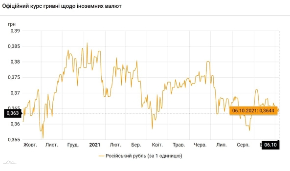 - 100 российских рублей - 36,4 грн (3,64 за 10 рублей, -1 коп.)