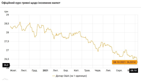 Курс валют на 8.10.2021: Гривна укрепилась к доллару