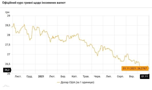 Национальный банк Украины обновил курсы валют на 1 ноября 2021 года.