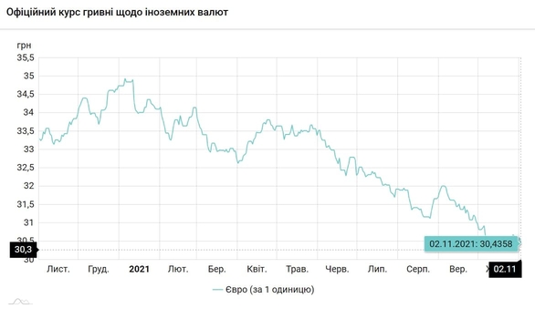 Курс валют на 2.11.2021: Гривна укрепилась к евро