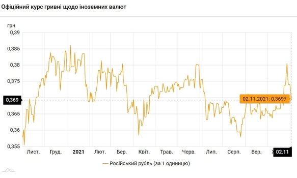 - 100 российских рублей – 36,9 грн (3,69 за 10 рублей, -2 коп.)