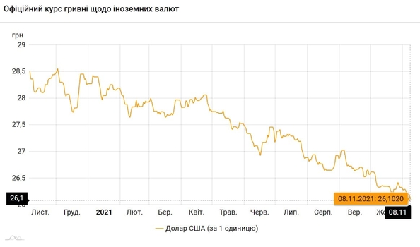 Национальный банк Украины обновил курсы валют на 8 ноября 2021 года.