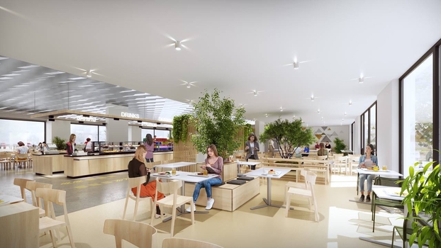 - Освещение, акустика и вентиляция. Яркое пространство с большим количеством естественного света и возможностью пикника на улице, акустические панели на внутренних стенах и потолках, улучшенные системы отопления, вентиляции и кондиционирования воздуха, а также звуковые системы, предназначенные для воспроизведения фоновой музыки.