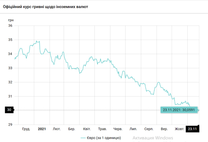 Курс валют на 23.11.2021: евро снова стоит 30 грн