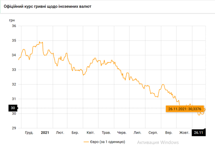 - евро (покупка / продажа) - 30.34/30.36